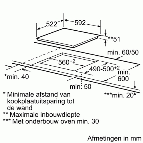 • מידות תא להתקנה (רוחבXעומקXגובה) 560 x 490 x 51 מ"מ