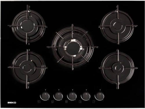 כיריים גז 70 סנטימטר. | משטח זכוכית מחוסמת. | מחזיקי סירים בציפוי אמייל. | פאנל כפתורי הפעלה קדמי. | כיריים בנויים 5 מבערי גז SABAF.